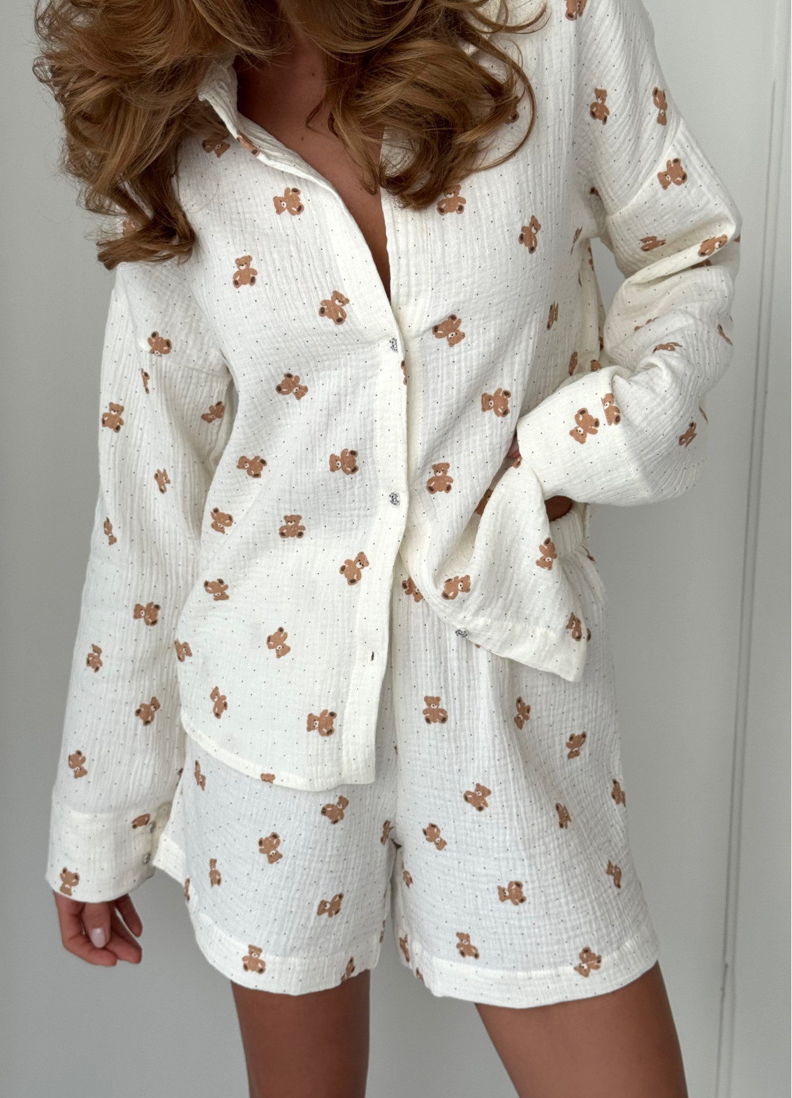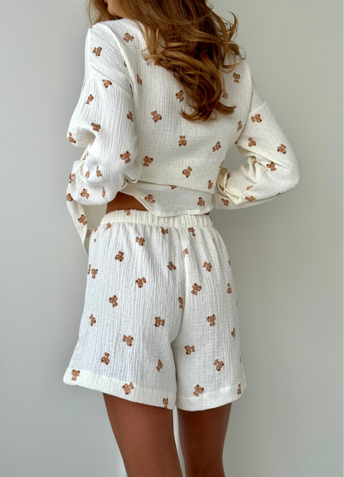 - Uroczy nadruk z misiami dodaje zestawowi wdzięku i domowego ciepła.
