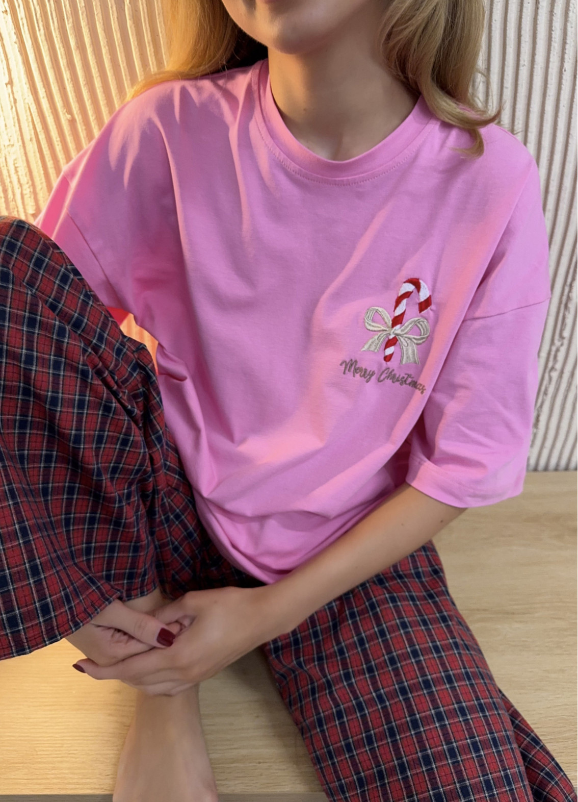 Der Pyjama "Medina" ist ein komfortables und stilvolles Set für entspannte Stunden zu Hause. Der weiche und hautangenehme Stoff sorgt für Bewegungsfreiheit und hohen Tragekomfort den ganzen Tag über. Das Modell kombiniert ein vielseitiges T-Shirt mit gerade geschnittenen Hosen und schafft so einen praktischen und modernen Homewear-Look.