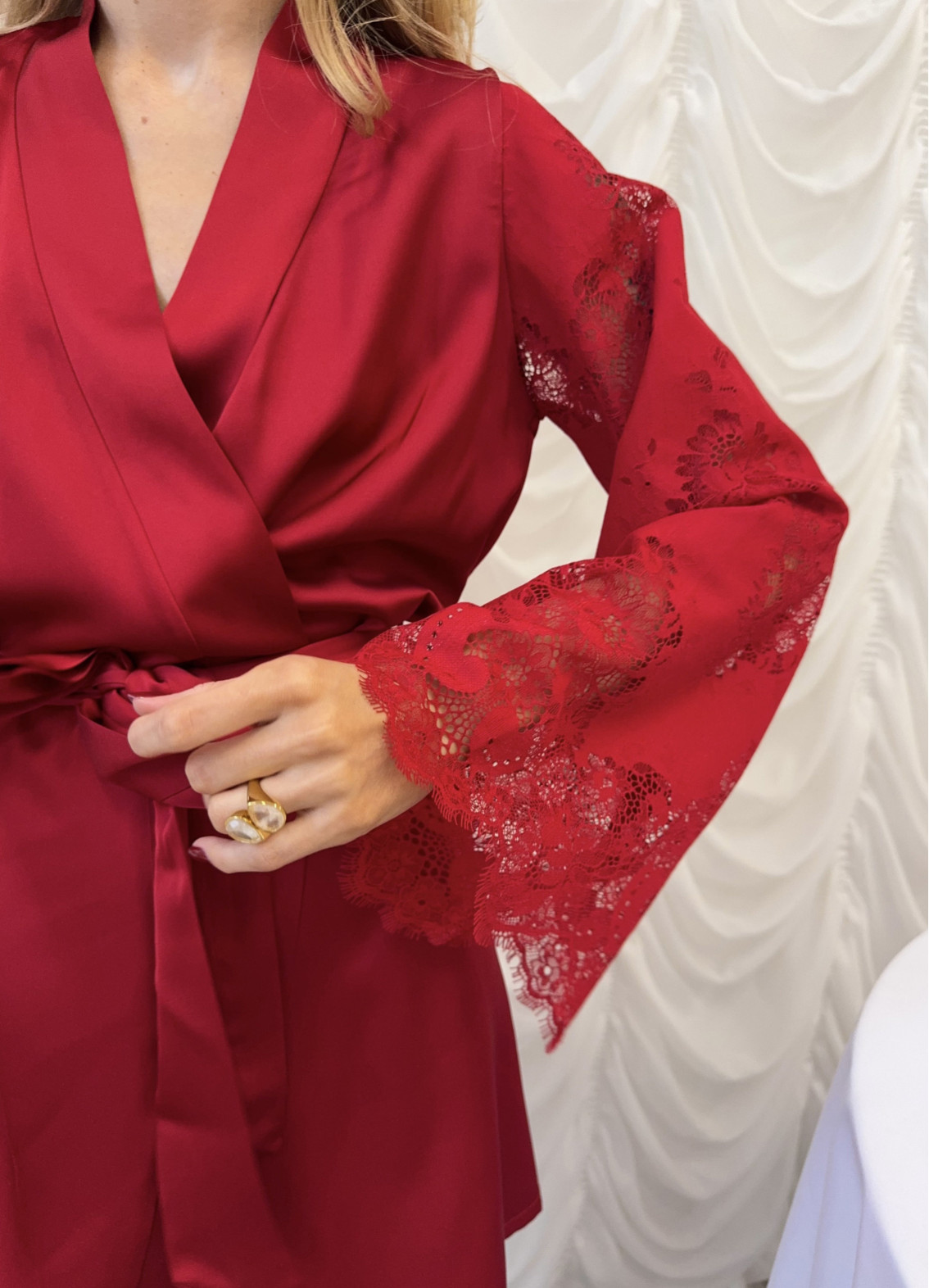 Der Bademantel „Nail“ ist eine elegante und stilvolle Wahl für höchsten Wohnkomfort. Der leichte Satin-Stoff schmiegt sich sanft an den Körper an und besitzt einen dezenten Glanz, der einen femininen und zarten Look schafft. Spitzenärmel verleihen dem Modell eine romantische Note und machen es ideal für den Alltag sowie für besondere Momente.