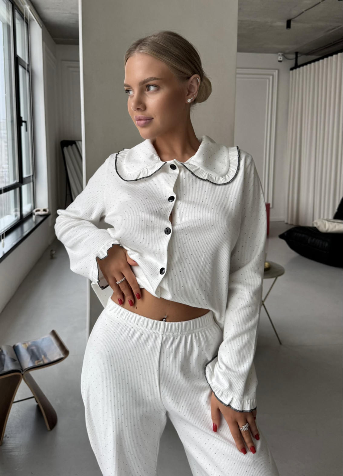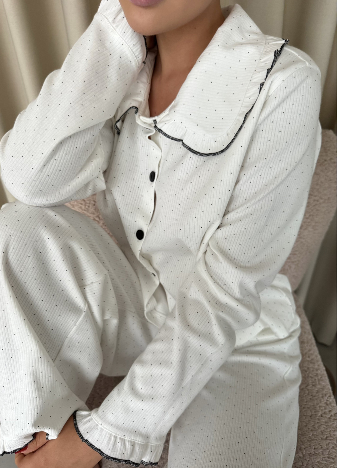- Manschetten und Kragen mit zart gewelltem Abschluss, der dem Pyjama Eleganz verleiht.