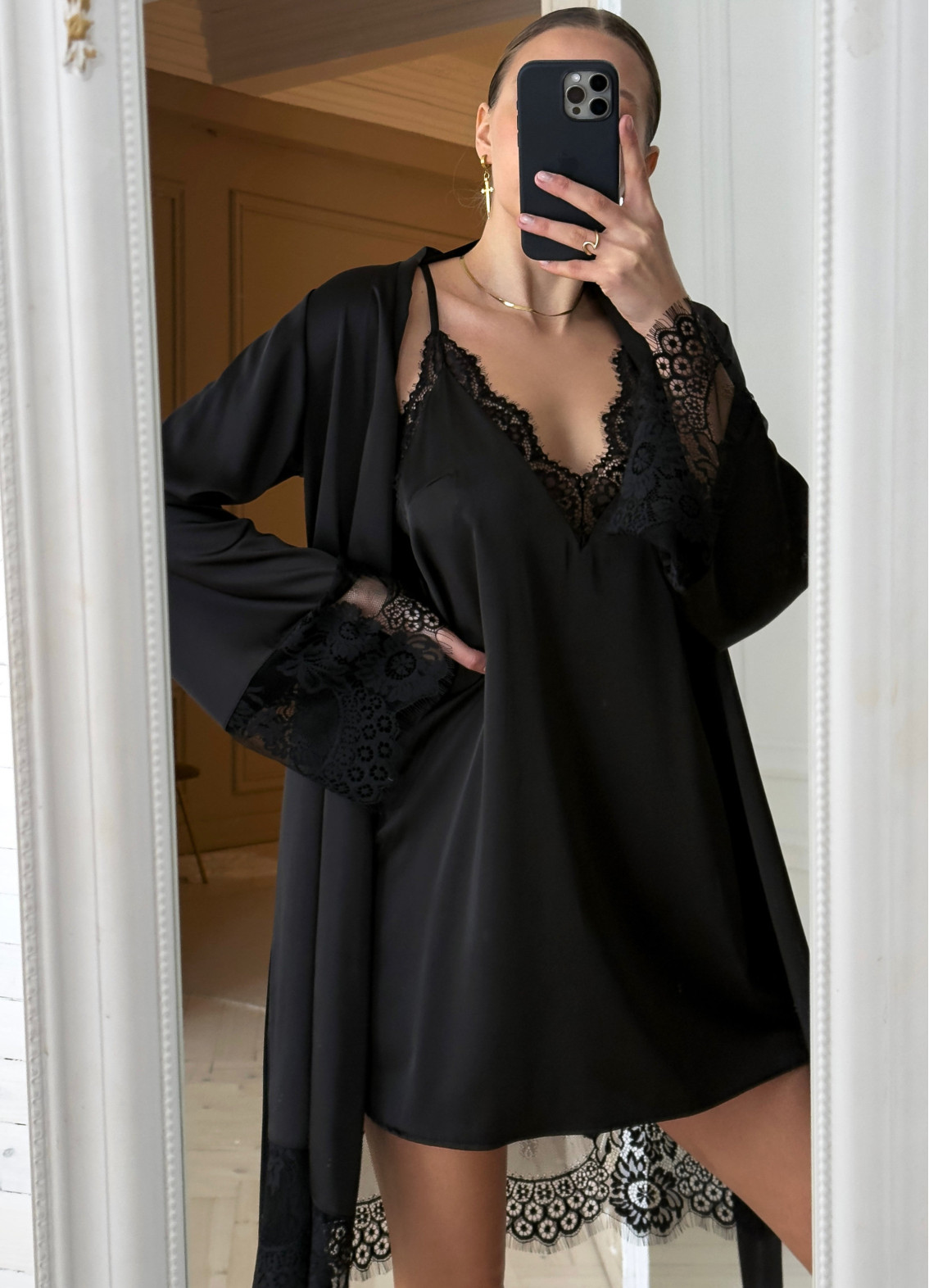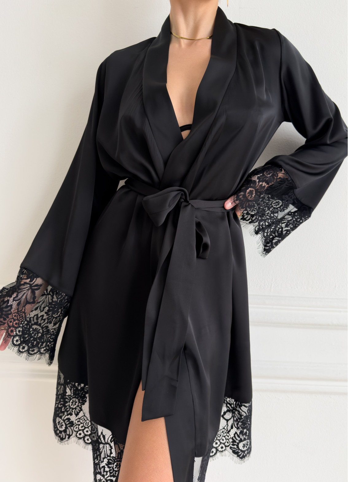 Szlafrok damski koronkowy Esmi, czarny