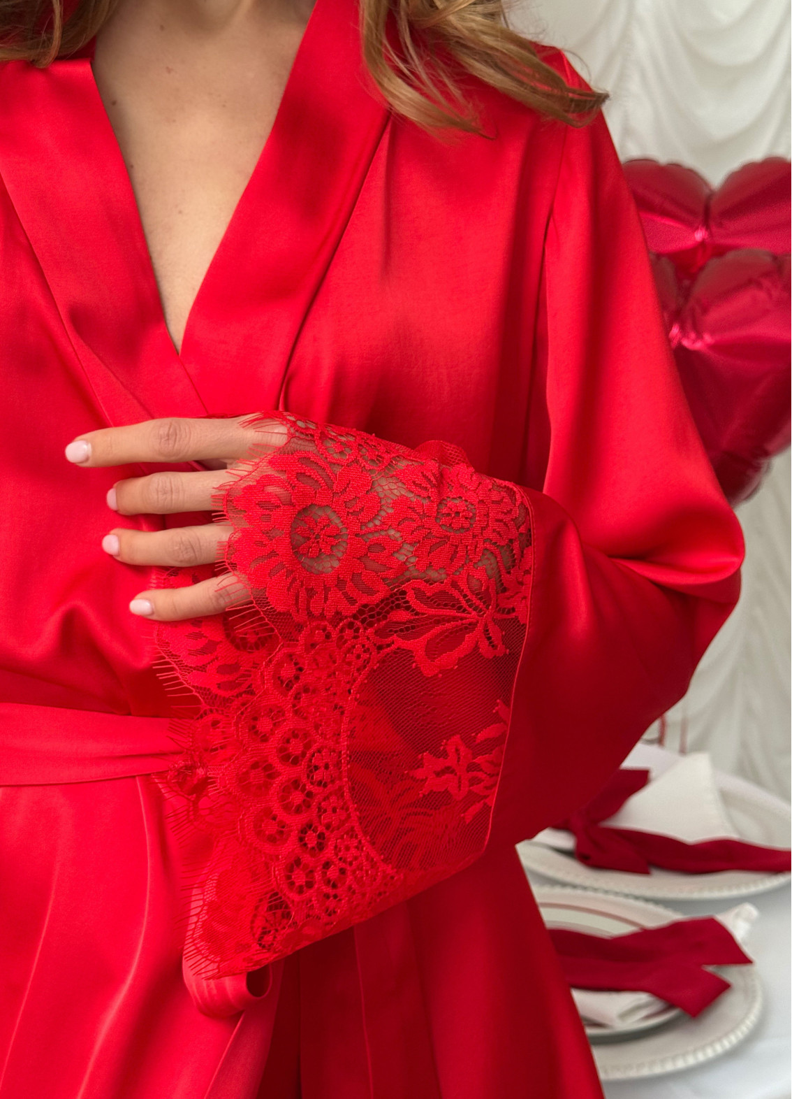 Szlafrok "Esmi" łączy w sobie delikatność, wyrafinowanie i domowy komfort. Lekka tkanina satynowa delikatnie otula ciało i ma miękki połysk, tworząc elegancki i kobiecy wygląd. Wyrafinowane detale dodają modelowi wyjątkowego uroku, czyniąc go idealnym wyborem zarówno na codzienny odpoczynek w domu, jak i na wyjątkowe chwile.