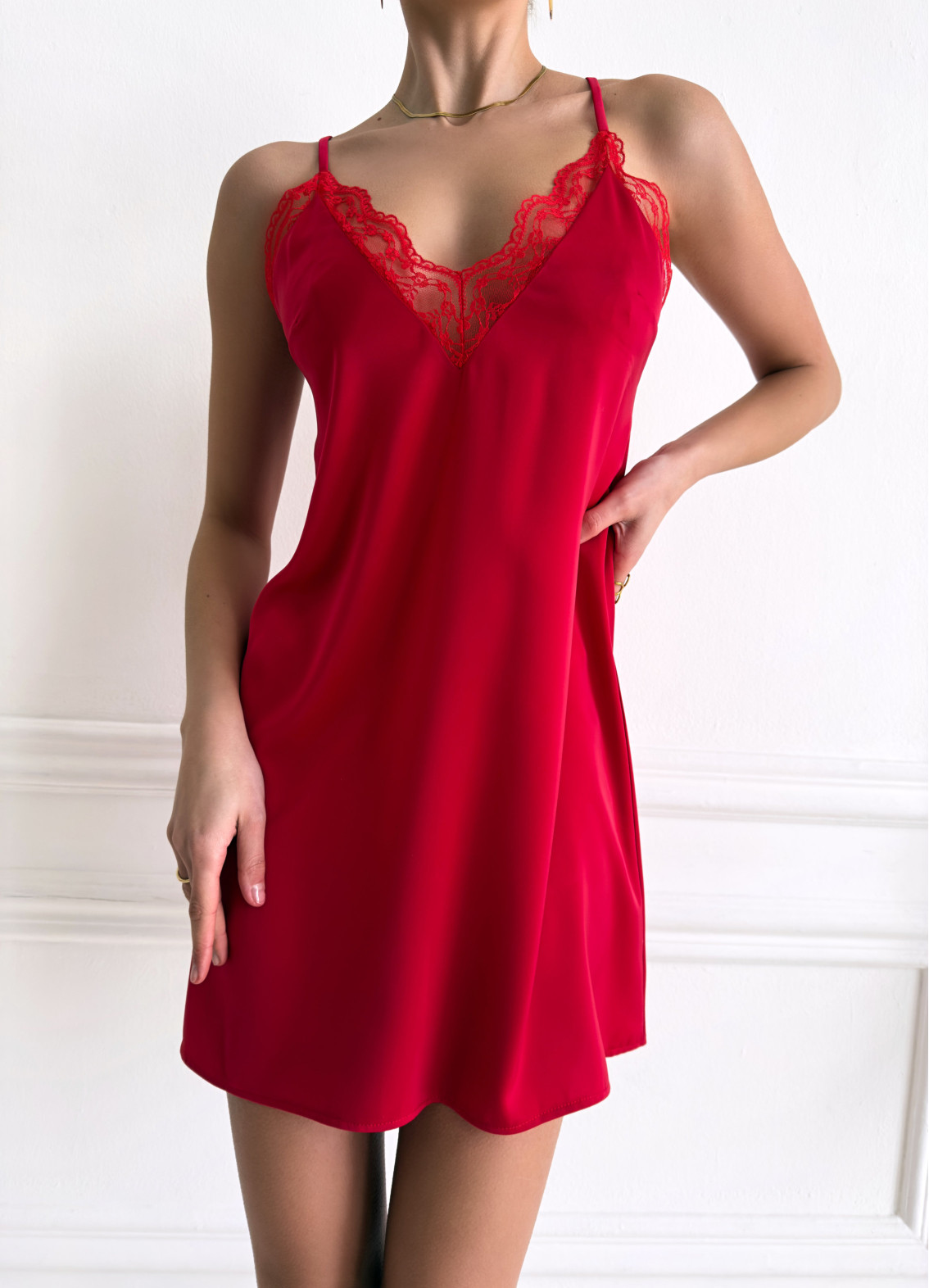 Koszula nocna „Esmi” to wyrafinowane połączenie elegancji, delikatności i kobiecości. Lekka satynowa tkanina z subtelnym połyskiem pięknie otula sylwetkę, tworząc stylowy i romantyczny wygląd. Model idealnie sprawdzi się zarówno do komfortowego snu, jak i na wyjątkowe chwile w domu, dodając pewności siebie i uroku.