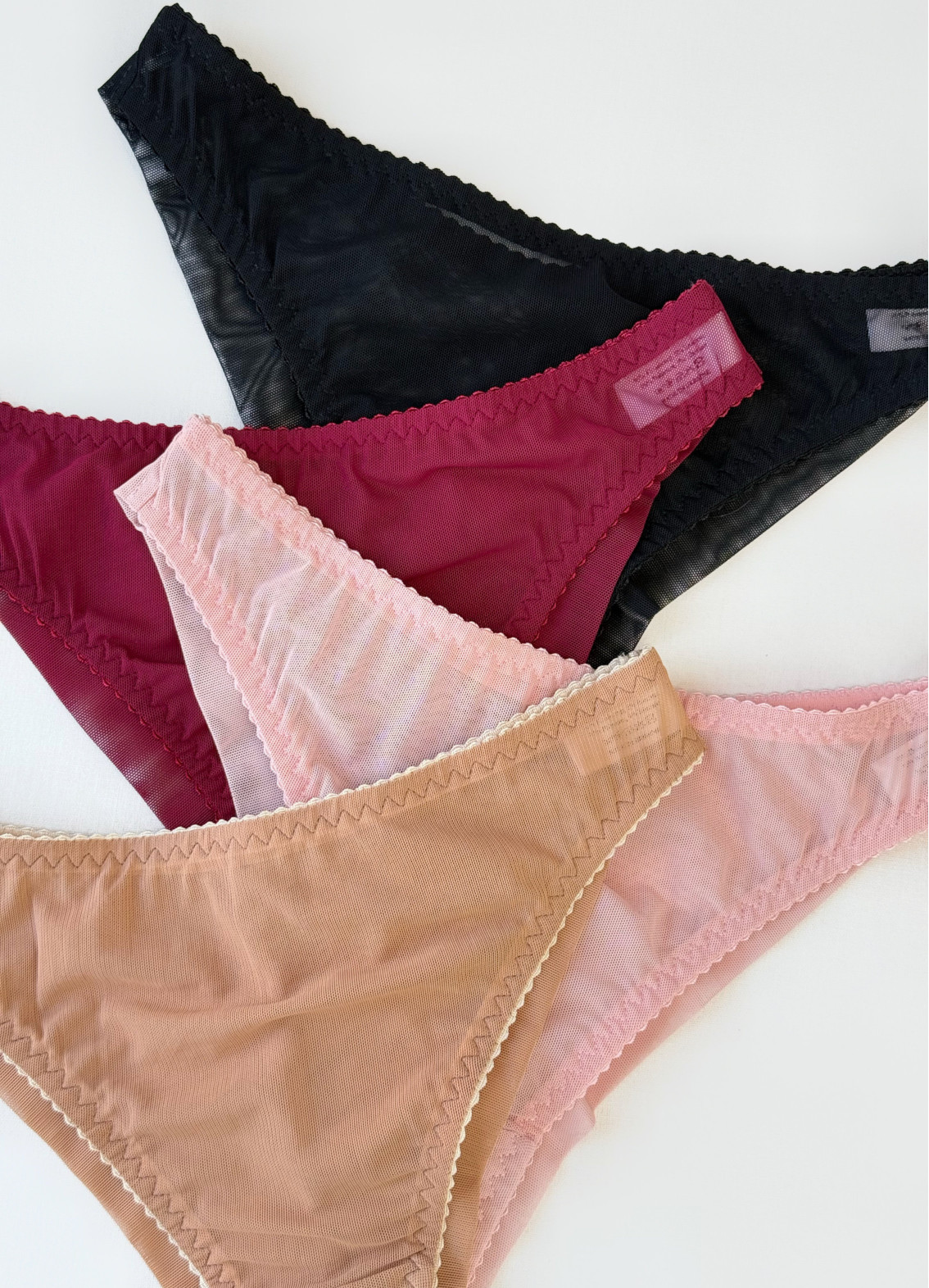 - Zestaw 4 sztuk: beżowe, pudrowe, bordowe i czarne.