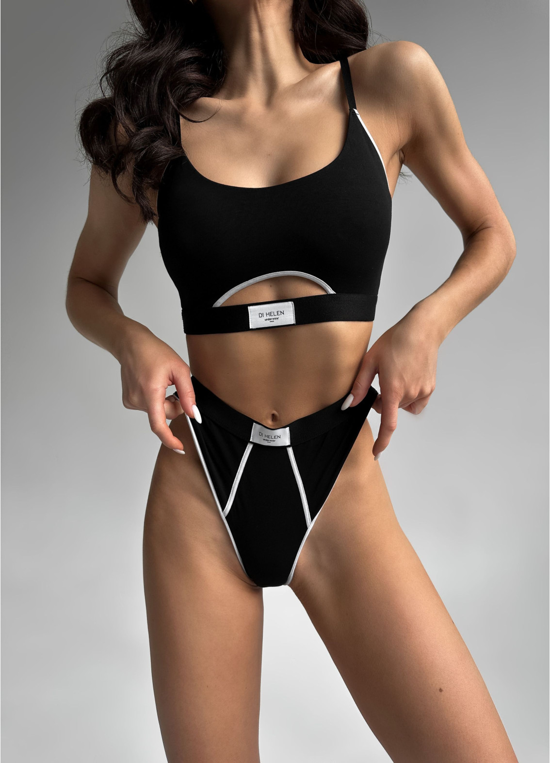 - Majtki: brazyliany z wysokim stanem, podkreślające sylwetkę.