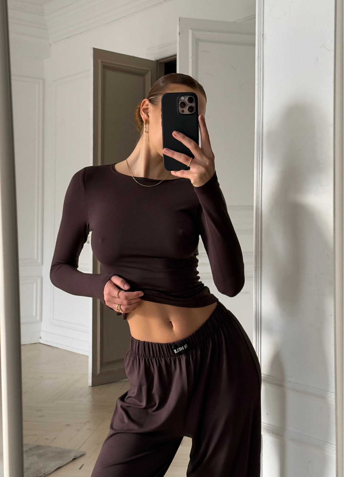 • Dopasowana bluzka z długimi rękawami, która idealnie układa się na sylwetce, niczym druga skóra.
