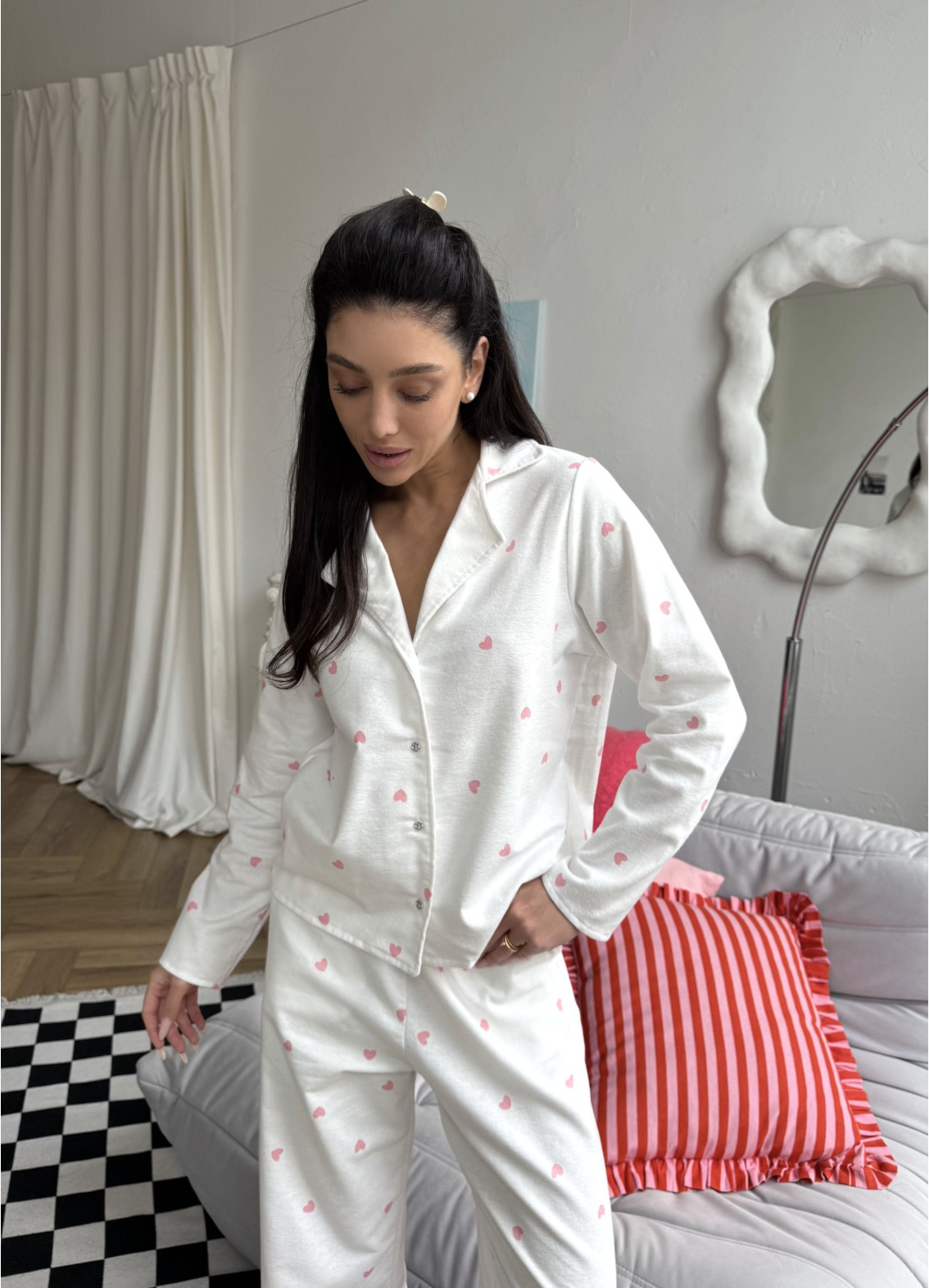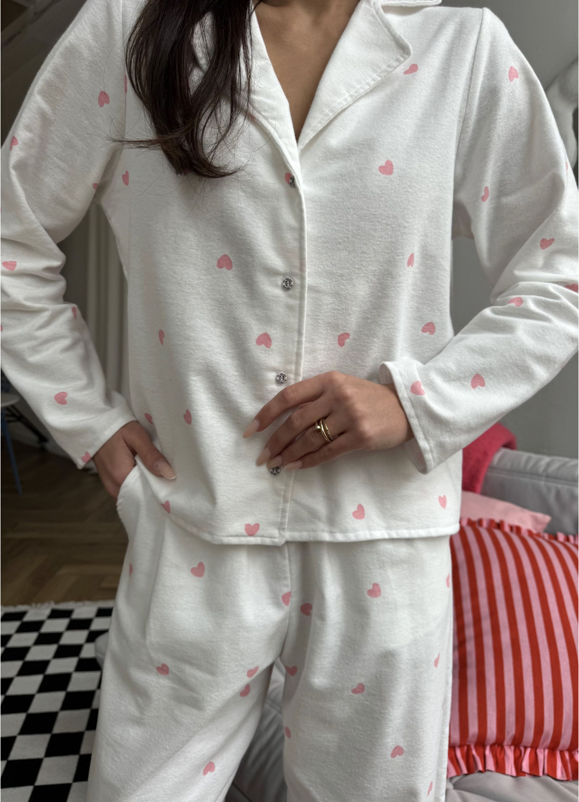 Piżama "Patricia" to połączenie delikatności, wygody i uroczego designu. Miękki materiał otula ciało, zapewniając uczucie przytulności, a przemyślany krój gwarantuje swobodę ruchów. Idealny wybór do odpoczynku w domu i snu, kiedy chcesz wyglądać stylowo nawet na co dzień.